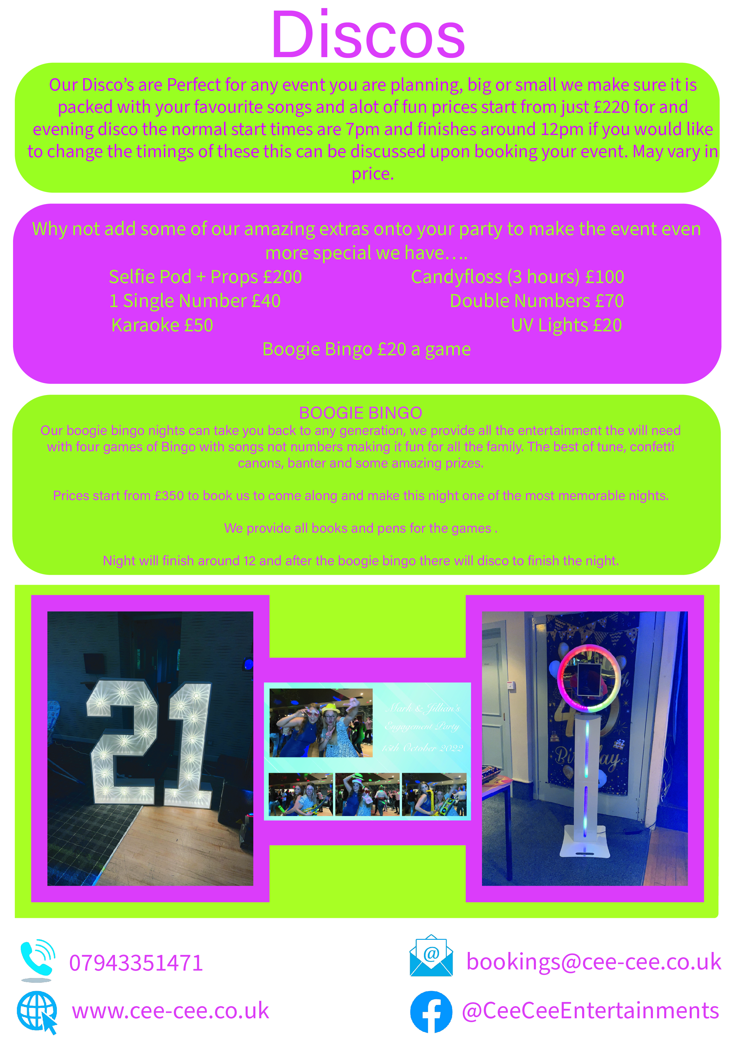 Our prices start from £275 for a Disco and this is from 7pm to 12pm any extra hours will be extra charge.