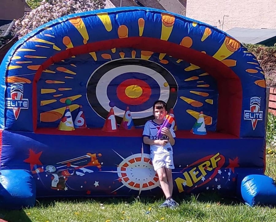 This is a perfect add on to any of our parties or even with a Bouncy castle. Comes with nerf guns and bullets with safety goggles. Perfect for all ages and even the big kids.